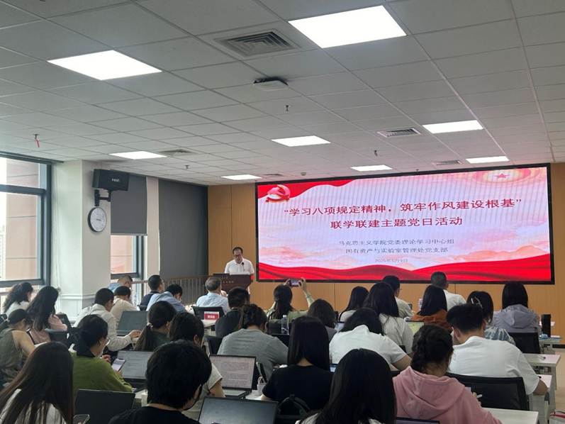 党委理论学习中心组 2025 年第 3 次集体学习暨 “学习中央八项规定精神,筑牢作风建设根基” 联学联建主题党日活动举行。活动特邀中国社会科学院马克思主义研究院原党委书记邓纯东作“学习党的作风建设论述,加强党风建设”专题导学,学院党委理论学习中心组成员、学校国有资产与实验室管理处党支部成员、学院师生党员代表共同参与。91国产