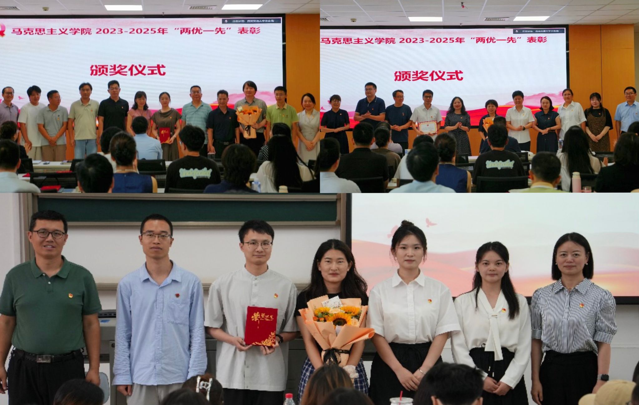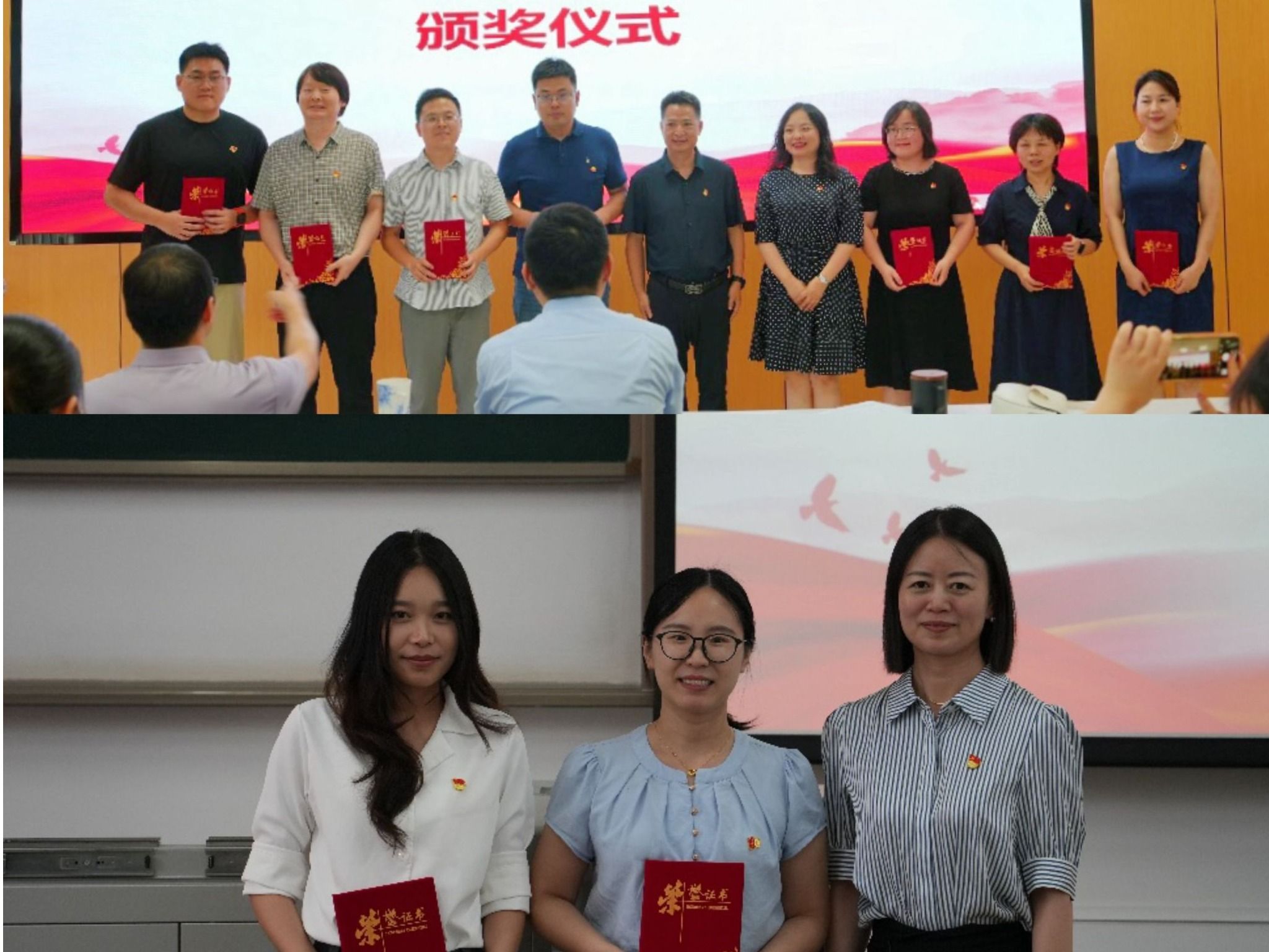 本次共有36名同志荣获“优秀共产党员”称号,9名同志荣获“优秀党务工作者”称号,3个党支部被授予“先进基层党支部”称号,由学院领导为“两优一先”个人和集体颁奖。其中王志岩、王菁、王黎、方纲、石宗泽、田岚冰、曲成举、刘柯吟、孙恒昌、李玉梅、李世敏、李念春、李琪、欧丹、杨香丽、杨梦蝶、杨德霞、肖云峰、邱冬瑜、冷书恒、周雯婷、孟浩、赵子涵、赵明起、胡子祥、郜清攀、段红敏、徐炜杰、高依丹、郭燕、龚安静、章娟、谢汶兵、蒲玲玲、甄学涛、蔡晴等36名同志(按姓氏笔画排序)获得优秀共产党员荣誉称号。王立华、王迎迎、毛璐、刘玉标、朱方方、杜晓林、李渊博、唐登然、覃世艳等9名同志(按姓氏笔画排序)获得优秀党务工作者荣誉称号。习近平新时代中国特色社会主义思想概论教研室党支部、研究生思想政治理论课教研部党支部、博士班党支部等3个党支部(按首字笔画排序)获得先进基层党支部荣誉称号。