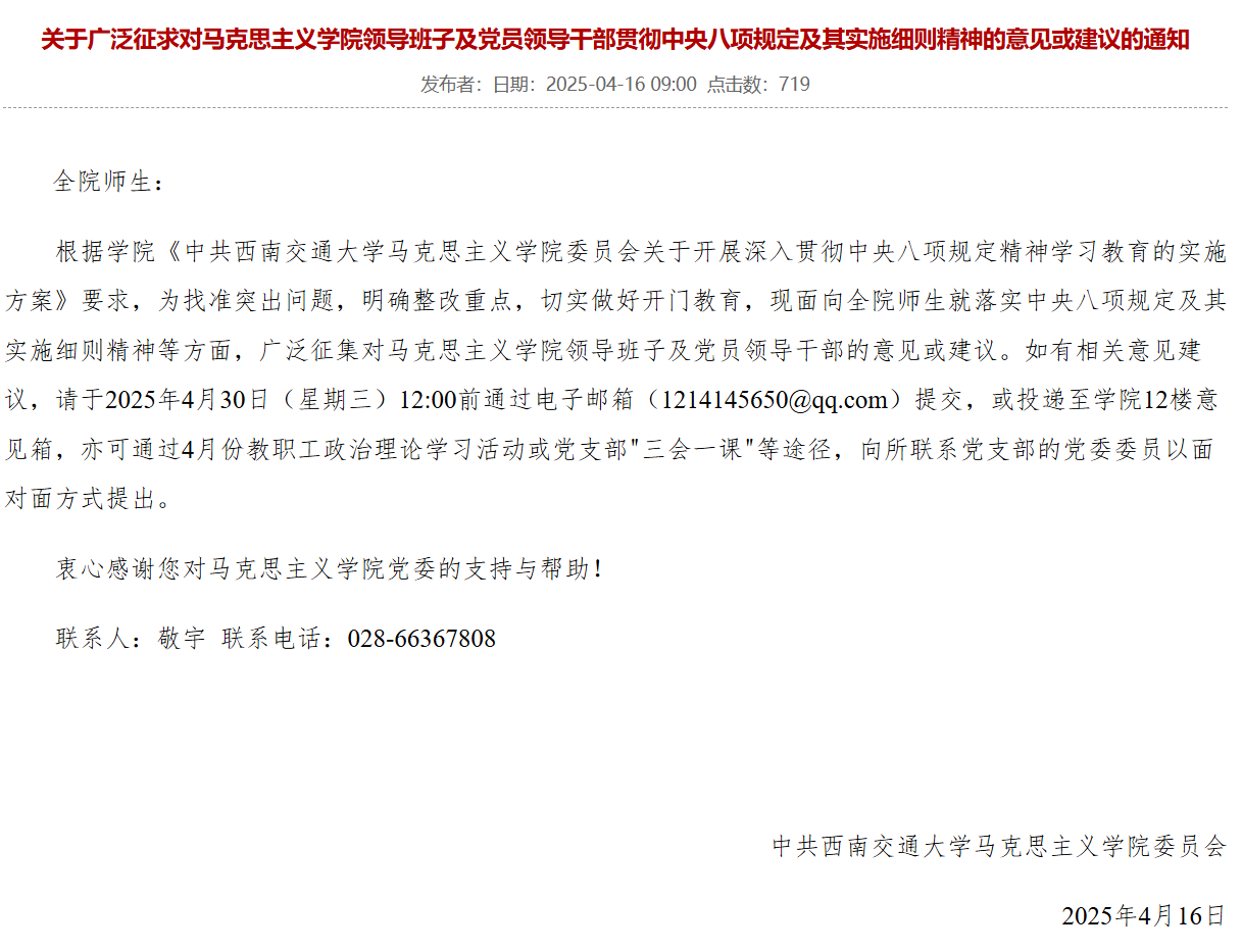 根据学校党委部署,学院党委自20253月起全面开展深入贯彻中央八项规定精神学习教育,制定出台《中共91国产 委员会关于开展深入贯彻中央八项规定精神学习教育的实施方案》(西交马院党〔20258号),坚持聚焦主题、简约务实,一体推进学查改,融入日常、抓在经常,有力推动学院各项事业健康发展。