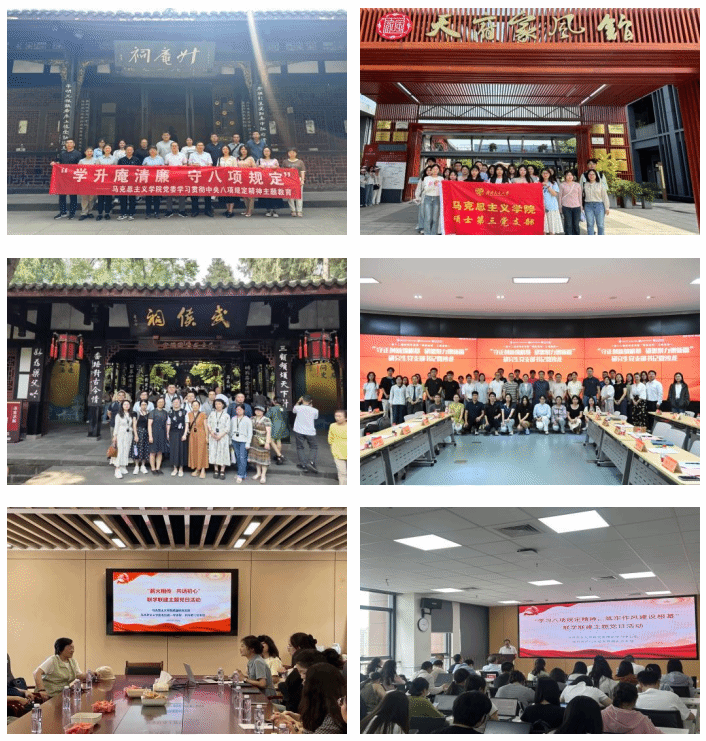 拓展教育场景。组织师生党支部赴杨升庵博物馆、天府家风馆、武侯祠等基地开展廉洁教育实践活动,以“实地参观+沉浸研讨”融合家风文化与党性教育;校内联合离退休党支部、外国语学院学硕党支部、地学学院研23级地质第二党支部、国资处党支部,校外联合企业(富士康、成飞)、乡村(蒲江铁溪村)、社区(西南交大社区)、事业单位(四川省、成都市档案馆)、高校(西安交大、西大)等开展党建联建,促进资源共享,推动学习教育走深走实。