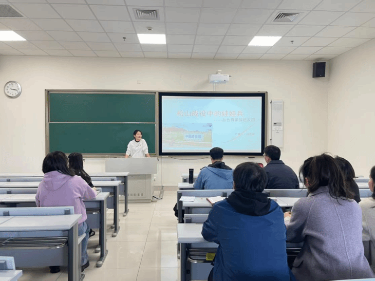 专题宣讲后,抗战经典分享会如期举行。支部成员精选红色经典,在重温红色记忆中感悟先辈初心。杨香丽以“松山战役中的娃娃兵——血色脊梁撑起家国”为题,从松山战役背景和娃娃兵英勇表现两方面展开汇报,讲述了娃娃兵群体在民族危亡之际投身战场,用稚嫩肩膀扛起家国重任的故事。向阶阶则以“抗战精神的时代光芒”为主题,回顾抗战历程。她指出:对历史最好的继承,就是创造新的历史。通过铭记那段救亡图存的悲壮历史,我们能更深刻地理解今日和平与发展局面的来之不易,从而更加珍惜当下、开创未来。