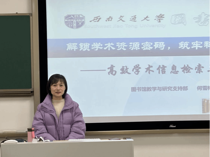 图书馆教学与科研支持服务部主任何雪梅在X30406教室作“解锁学术资源密码,筑牢科研素养根基”专题讲座。何雪梅教授从博士学位阶段学习目标出发,围绕学术信息数据库高效利用方法展开讲解,并针对检索词选择、检索技巧及结果筛选排序等步骤进行指导,助力青年党员提升科研能力,让在场学生收获颇丰。