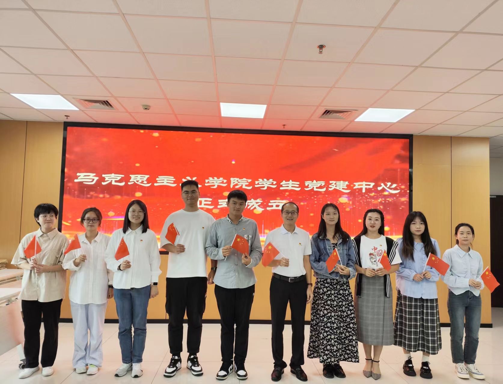 学生党建中心正式成立,并为学生党建中心第一届部长颁发聘书。随后,学院专职组织员杨雪莲和硕士第一党支部宣传委员赵明起为学生党建中心第一届新进成员颁发纪念品,与会老师与全体党建中心成员合影留恋。