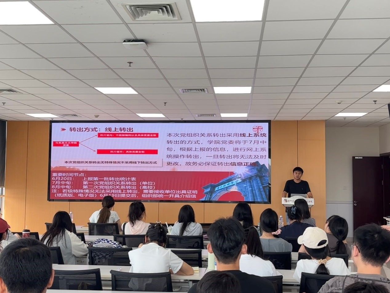 6月17日下午,学院召开2024届毕业生离校工作暨廉洁教育主题班会。本次会议由赵子涵主持,学院党委副书记、学生工作组组长邓秀芸,本科生辅导员杜晓林和全体2024届毕业生参加。