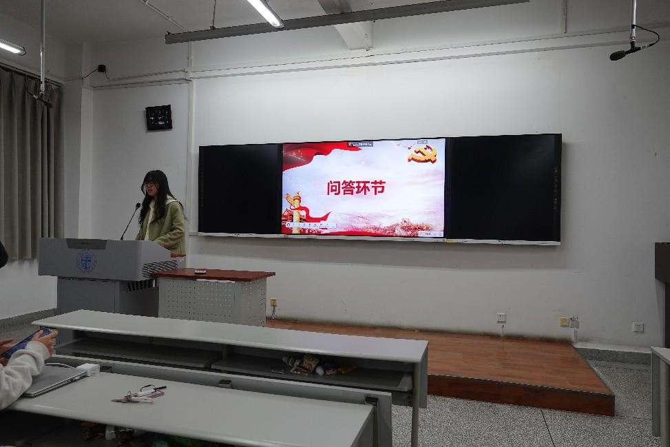 接着进入政治问答环节,由学生会组织部部长李雪儿主持,活动以“全国两会为主题”竞答拉开序幕,设置必答、抢答两大环节,题目涵盖“中国式现代化”“新质生产力”“全过程人民民主”等核心概念。同学们踊跃参与,热情抢答,学习积极性高涨。