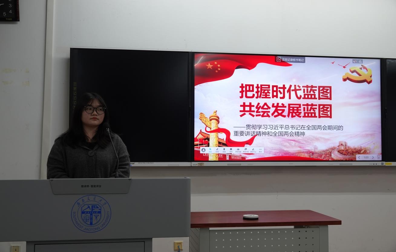 随后由学生会组织部副部长何显娇组织开展以“把握时代蓝图,共绘发展蓝图”的政治学习会议。结合两会精神,呼吁青年师生勇担时代使命。她引用两会青年代表的先进事迹,如扎根乡村的创业青年、科技前沿的攻坚团队,强调青年应“汲取榜样力量,提升政治素养与专业能力”。何显娇指出,需以两会精神为指引,将个人奋斗融入国家发展大局,在科技创新、民生改善、改革攻坚中贡献智慧与力量。”与会师生纷纷表示,将立足岗位、知行合一,为推动中国式现代化建设注入青春动能。