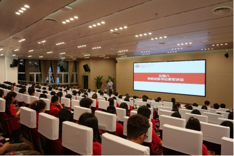 学院党委书记廖军向149名新生致欢迎词,提出深耕马列经典,筑牢信仰根基;积极实践,提升解决问题能力;言行合一,展现马院学子风范三点期望。