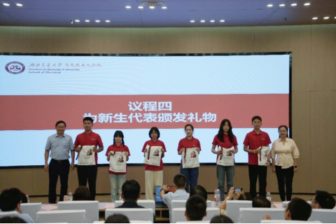 见面会还设有赠礼仪式、朋辈导师聘任及“学子明星”表彰环节。学院领导与教师为新生代表赠送定制迎新礼,寄托深深祝福与期待。为帮助新生快速适应学习生活,学院聘任易梦瑶、郭钰艺、王照涵担任朋辈导师,并现场颁发聘书。为充分发挥榜样示范引领作用,会上为2024年度“学子明星”获得者王潇毅、盘小莉、徐悦、都燕萍、姚娇娇、朱古力颁发证书。都燕萍作为代表分享了自己在学院的成长与收获。