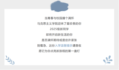 2025级新生的大学生涯拉开了精彩序幕。未来,学院将持续为新生提供优质的教育资源与贴心服务,陪伴他们在马克思主义理论学习与实践探索中不断成长,为国家发展与社会进步贡献青春力量。