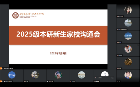 9月1日,学院学工组召开线上家校沟通会,搭建家校协同育人桥梁。党委副书记邓秀芸详细介绍了学院学生工作理念与发展规划,提出了凝聚家校共育合力的倡议。研究生新生辅导员赵晨、杜晓林,本科生新生辅导员敬宇,分别就2025级新生概况、大学生活规划及辅导员工作职责进行说明,朋辈导师也分享了学习与生活经验。