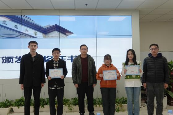 颁奖仪式中,各位领导老师分别为获奖选手颁发获奖证书并合影留念。