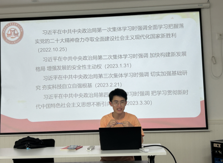 首先,支部宣传委员赵明起带领大家学习了习近平总书记在中共中央政治局第五次集体学习时的重要讲话,带领全体成员了解了建设教育强国的根本保证、根本目标、重要使命、基本路径等。