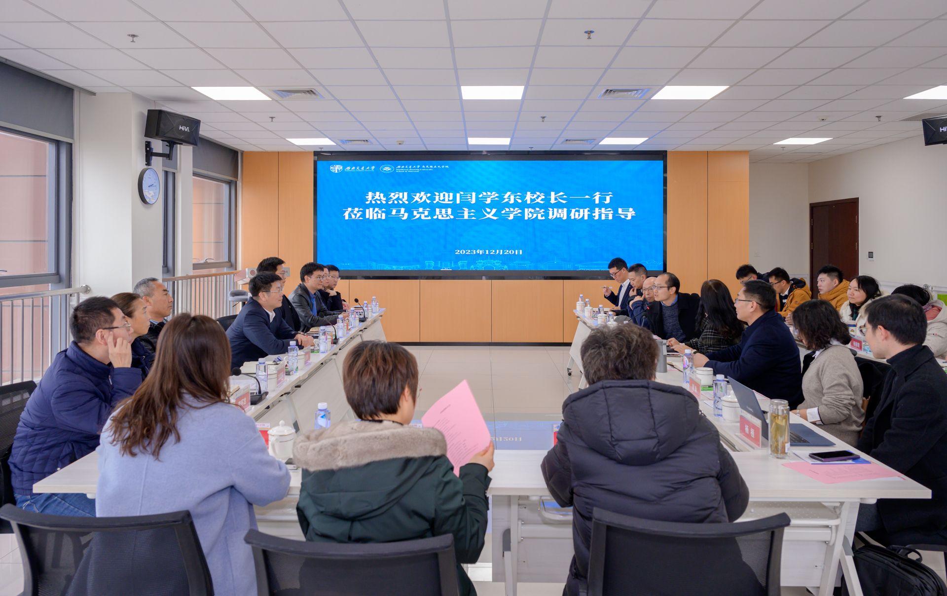 在推进课程思政建设方面发挥重要作用,在深挖本行业思政资源方面多下功夫,在对外传播、人工智能与马克思主义理论交叉研究、习近平新时代中国特色社会主义思想“三进”、基地建设等方面继续努力。他表示,学校将一如既往重视、支持并帮助学院的发展与进步,并鼓励学院全体师生团结一致、凝心聚力,努力创造一流成就。