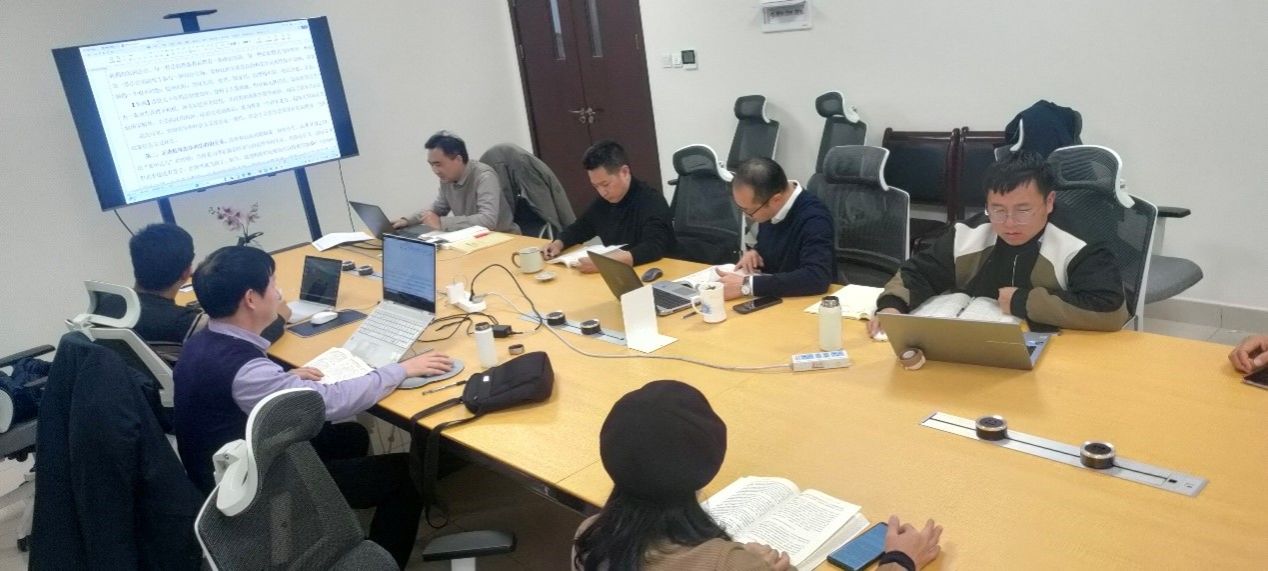 自2023年12月3日接到教指委分派的两章教学设计的任务之后,我们教研室随即便召开了组织动员会,在课程负责人李学勇教授的统一部署下,集中全教研室力量,成立由李学勇牵头第九章、凡景强负责撰写,刘玉标牵头第八章、郜清攀负责撰写,其他老师分别参加的两章教学设计团队。在经过近三周的前期准备基础上,教研室于2023年12月28日,在学院31303会议室,从上午九点到晚上九点,对照两章教学设计初稿逐字逐句、字斟句酌打磨;又在近两周的修改完善基础上,于2024年1月10日上午,对修缮后的两章教学设计进行精雕细刻式再打磨,廖军书记亲临打磨会并提出意见建议。课程负责人李学勇教授对说课老师课件制作及相关事宜进行嘱咐安排。