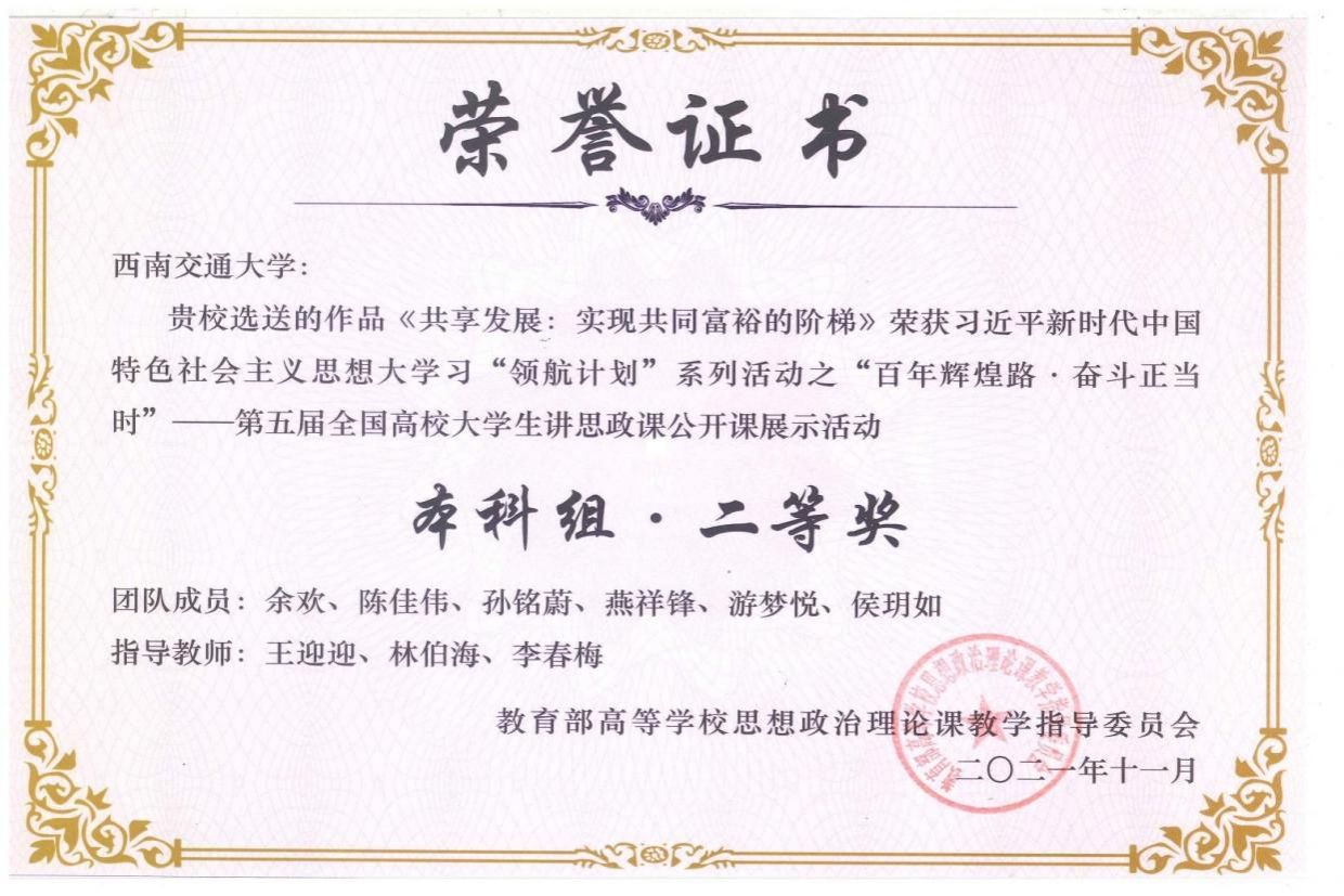 学院以“政治要强、情怀要深、思维要新、视野要广、自律要严、人格要正”要求为根本导向,实施名师培育、青苗帮扶、特聘教授、优秀团队“四大行动计划”,全力提升教师的教学能力水平,着力培养可信可敬可靠、乐为敢为有为的思想政治理论课教师队伍,成效显著。近年来,朱铃教授获首届全国高等学校优秀思政课教师一等奖(全国仅7人),林伯海教授获四川省优秀教师;在全国高校思想政治理论课教学展示活动中获一等奖3人、二等奖2人,教学能手1人,获教学骨干1人;在四川省高校青年教师教学竞赛中获二等奖1人、三等1人;在四川高校教师教学创新大赛中获二等奖2项;在四川省的“精彩一课”讲课比赛中获特等奖3人、一等奖2人、二等奖8人、三等奖2人;获教育部思政课年度影响力人物及提名人物4人,四川省高校思政课(辅导员)名师工作室3个,