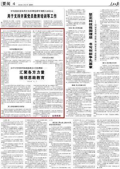 子弟小学等开展多场二十大专题集体备课会;聚焦科学家精神育人主题,依托国家级科学家精神教育基地——交通强国科学家精神教育基地,组织大中小学生开展“同上一堂科学家精神育人思政大课”,同时将专家讲授、参观考察、观课议课有机融合,以“行走的课堂”开展一体化研学,探索大中小学思政课教师师资联培新形式。