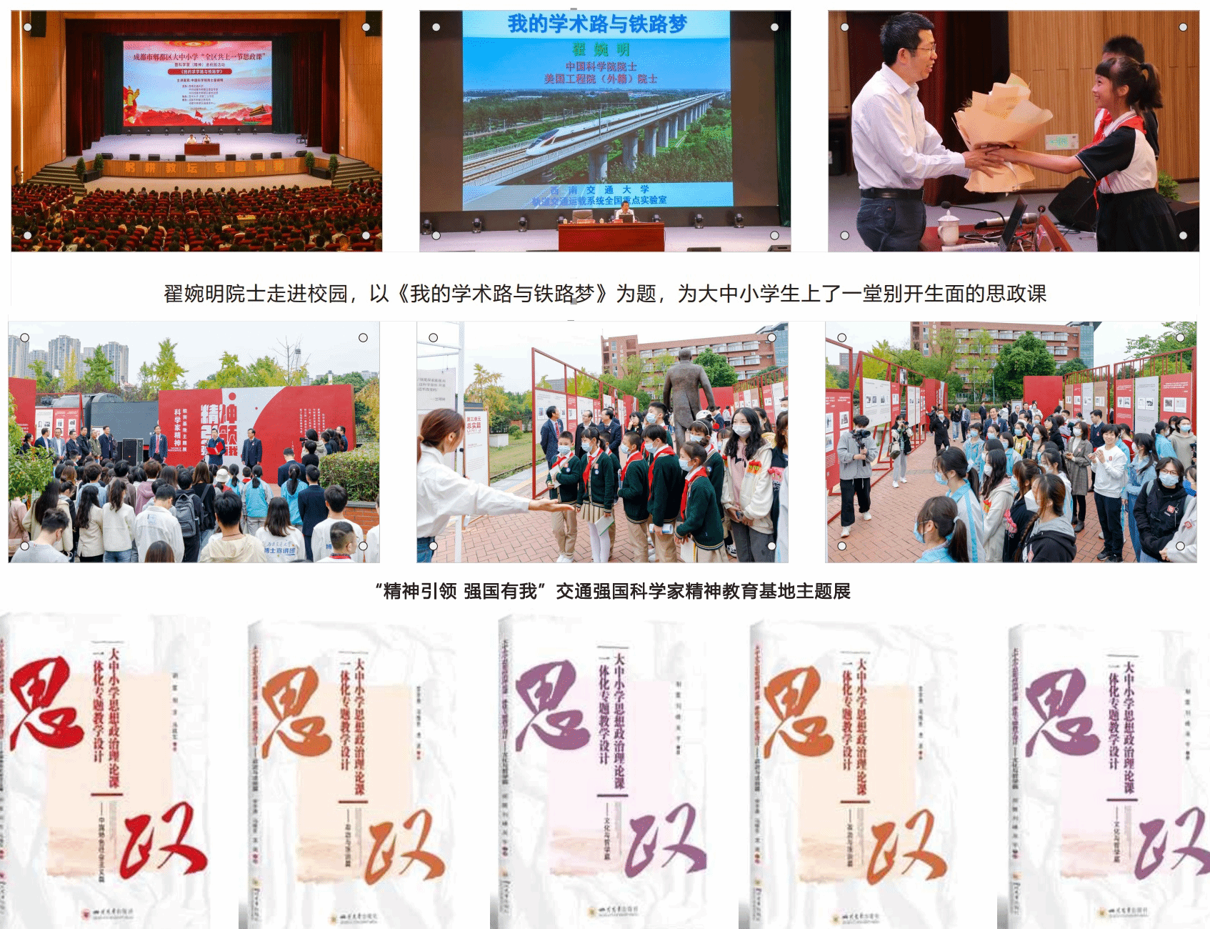 探索新范式,大中小学思政课一体化建设取得新突破。 学校聚焦党的二十大、中国式现代化等重大主题,将主题专题化、专题教学化,构建大中小学基于同一专题的循序渐进、螺旋上升的教学体系,开辟大中小学思政课一体化的专题化教学新范式。在出版《大中小学思政课一体化专题教学设计》系列丛书( 5册)的基础上,聚焦党的二十大精神进大中小学思政课,策划出版《中国式现代化的五大特色》《五个必由之路》等系列专题教学设计丛书,同时联合成都铁路中学、91国产