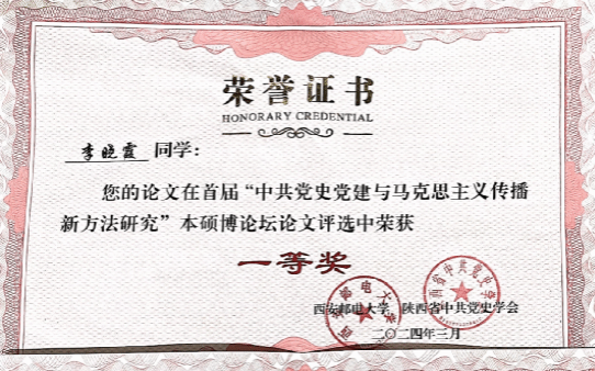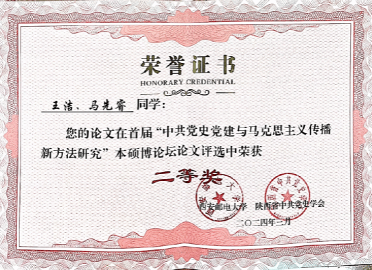 为推动中共党史党建学科的发展、深化新时代马克思主义传播方法的研究,搭建相关专业学生学术的交流平台,提高学术创新能力、拓宽学术视野,2024年3月23日至24日,首届“全国中共党史党建与马克思主义传播新方法研究”本硕博论坛在西安邮电大学召开。来自我院的2022级硕士研究生王洁、李晓霞分别提交的《从互助到根本改造:中共创建时期邵力子政治思想的转变》和《“酆斯云思想”讨论:中国共产党教育农民的一大胜利》成功入选并受邀参加了此次论坛。