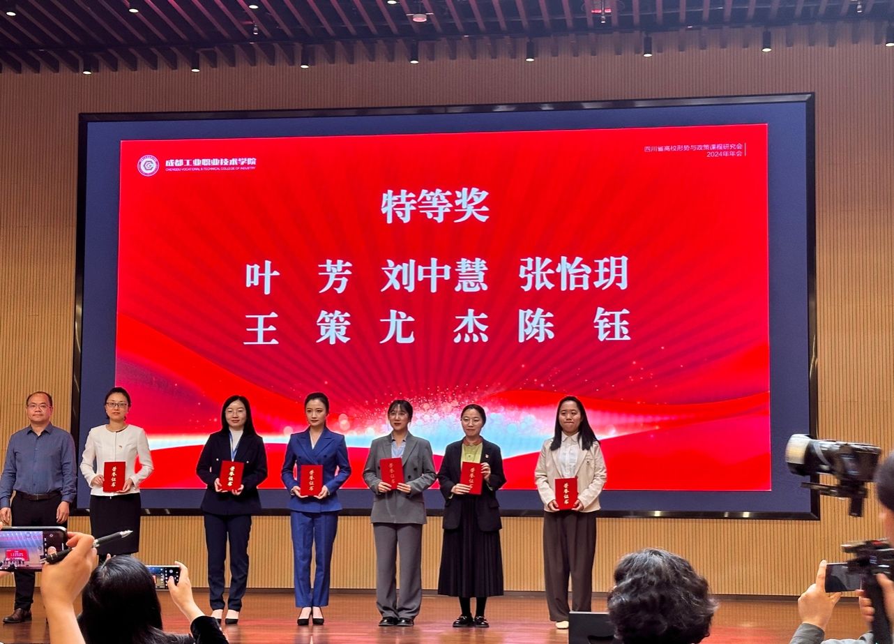 为深入学习贯彻习近平新时代中国特色社会主义思想,持续提升高校“形势与政策”课的针对性和吸引力,3月20日下午,2024年度四川省高校“形势与政策”课教学竞赛决赛在四川天府新区天新蜀域国际酒店举行。由学院形势与政策教研部选送、来自校党委宣传部的刘中慧老师与省内其他本科高校教师同台竞技,凭借较为扎实的理论功底和教学技能,以92.24分的优异成绩荣获本科组特等奖。形势与政策教研部主任马先睿带队参加了比赛。