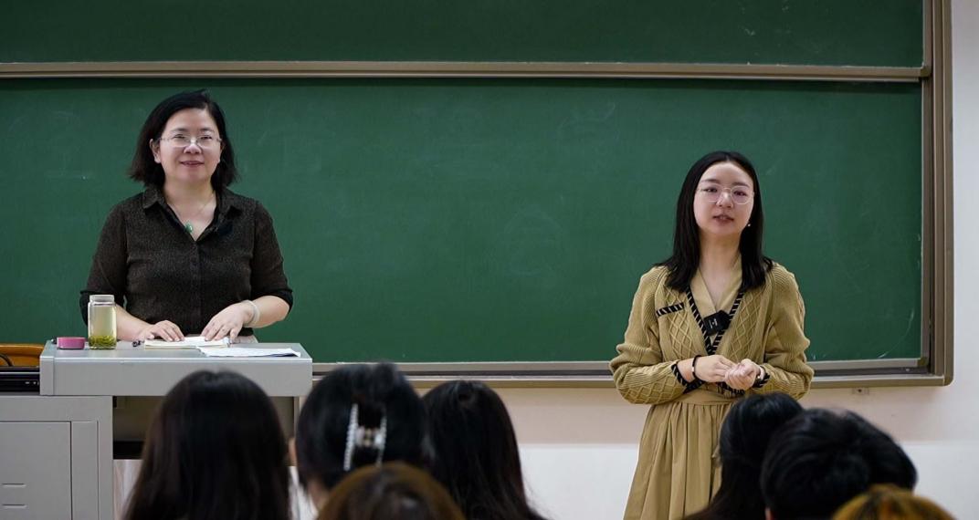 以“习近平新时代中国特色社会主义思想概论”课教改实验班为依托进行积极探索,邀请校外行业精英和知名校友走进课堂,讲述习近平新时代中国特色社会主义思想的生动实践。10月14日上午,马克思主义理论91级校友、中铁十五局集团特级专家、学校思政课校外特聘教授方玲来到课堂,和欧丹老师一起为教改实验班的同学讲授习近平文化思想专题。