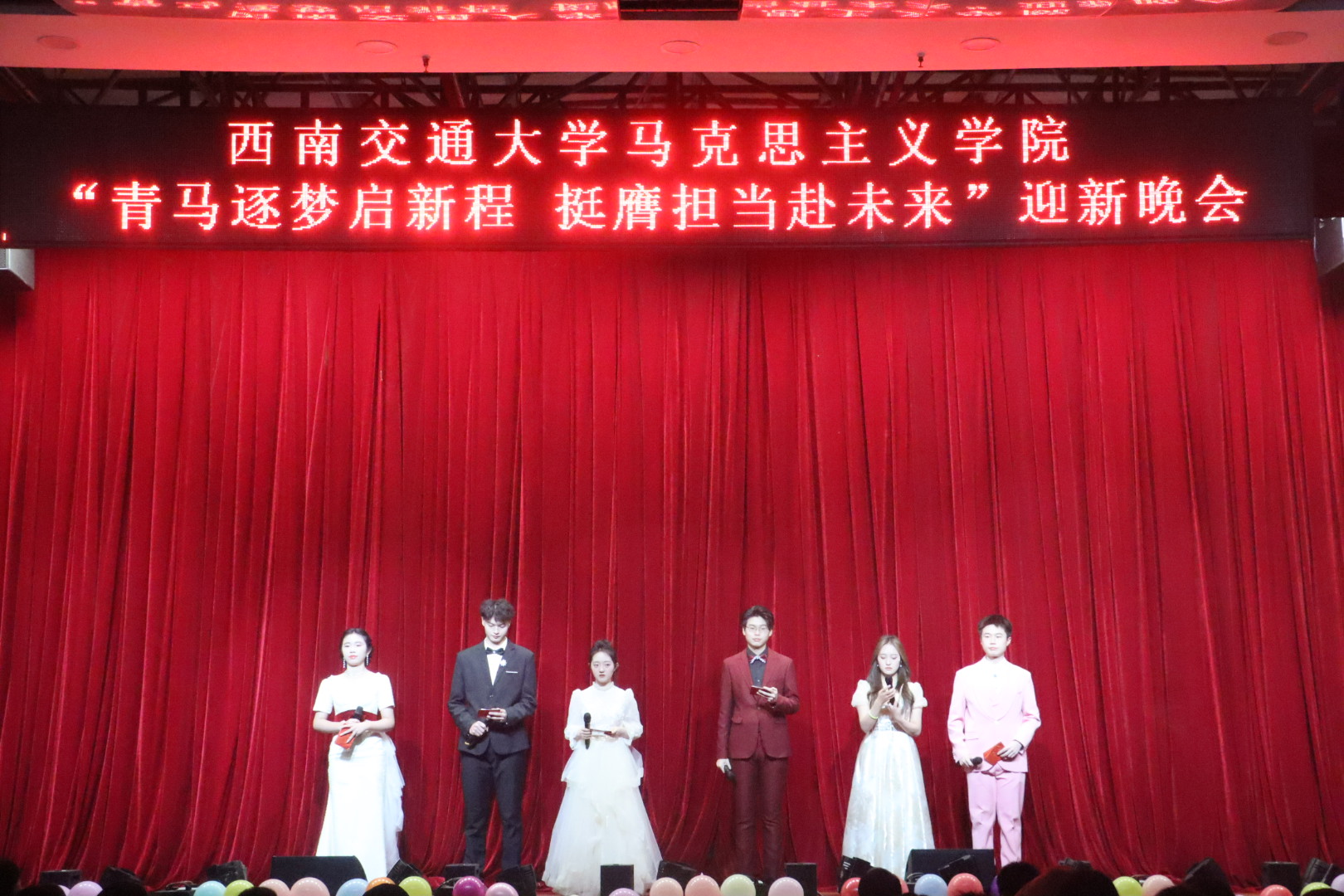 犀浦校区一食堂三楼隆重举办了“青马逐梦起新程,挺膺担当赴未来”2025年迎新晚会。学院党委书记廖军,院长田永秀,党委副书记邓秀芸,副院长李学勇、谢瑜、王菁,思政培研中心副主任杨伟宾等领导出席本次晚会,来自学院各系室、教研部、机关的老师们,学院本、硕、博各年级的同学们齐聚一堂,共辞旧岁,共迎新年,为寒冷的冬夜增添了一份温暖与欢乐。