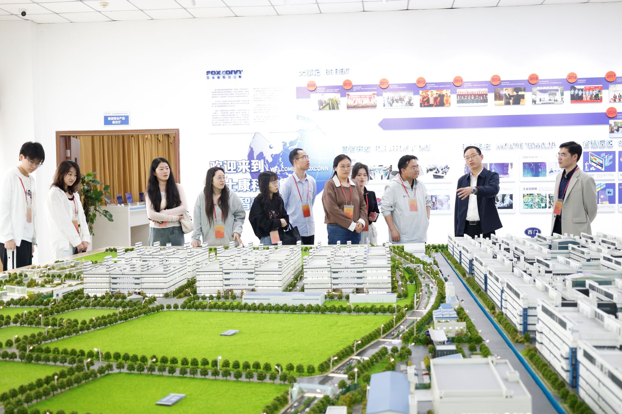由富士康(成都)科技工业园党委副书记谭光进带领我院师生党员参观了工业园区,介绍了企业发展历程、核心产业现状、人员组织情况等。谭书记详细阐述了富士康集团近年来在党的组织建设、人才发展和科技创新方面取得的丰硕成果,并就“1562”党建工作法进行了详细讲解,包括“六大体系”、“十大品牌”、“一个中心、两个重点、三个原则、四个愿景”工作方针等具体内容,展示了非公企业党建的工作方法和特色亮点。
