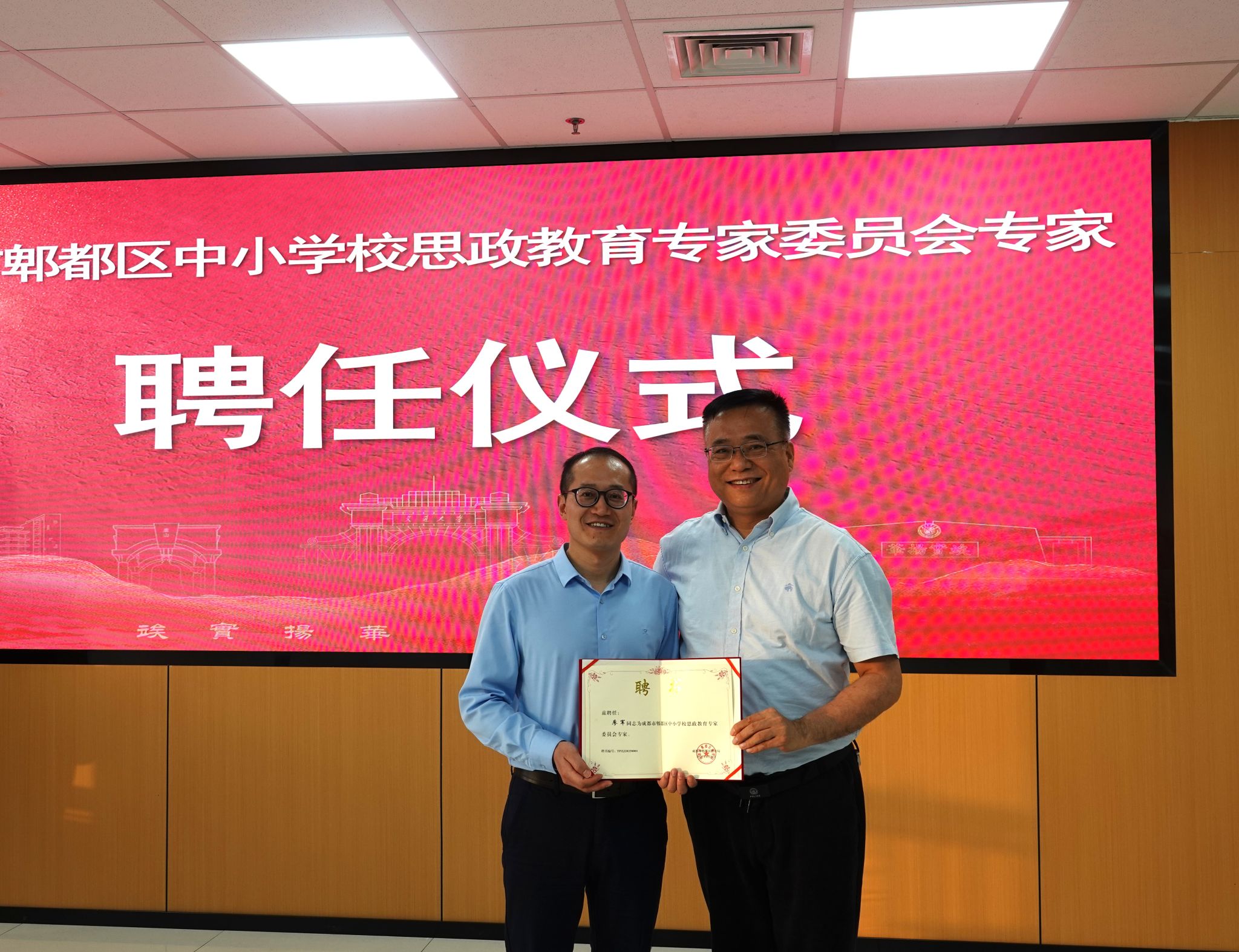 讲座开始前,举行了聘任仪式。为持续推动大中小学思政教育一体化建设,以高校、地方“双向走进”创新机制为着力点,加快将“双向走进”工作形成特色,郫都区教育局聘请学院党委书记廖军、院长田永秀为郫都区中小学校思政教育专家委员会专家。