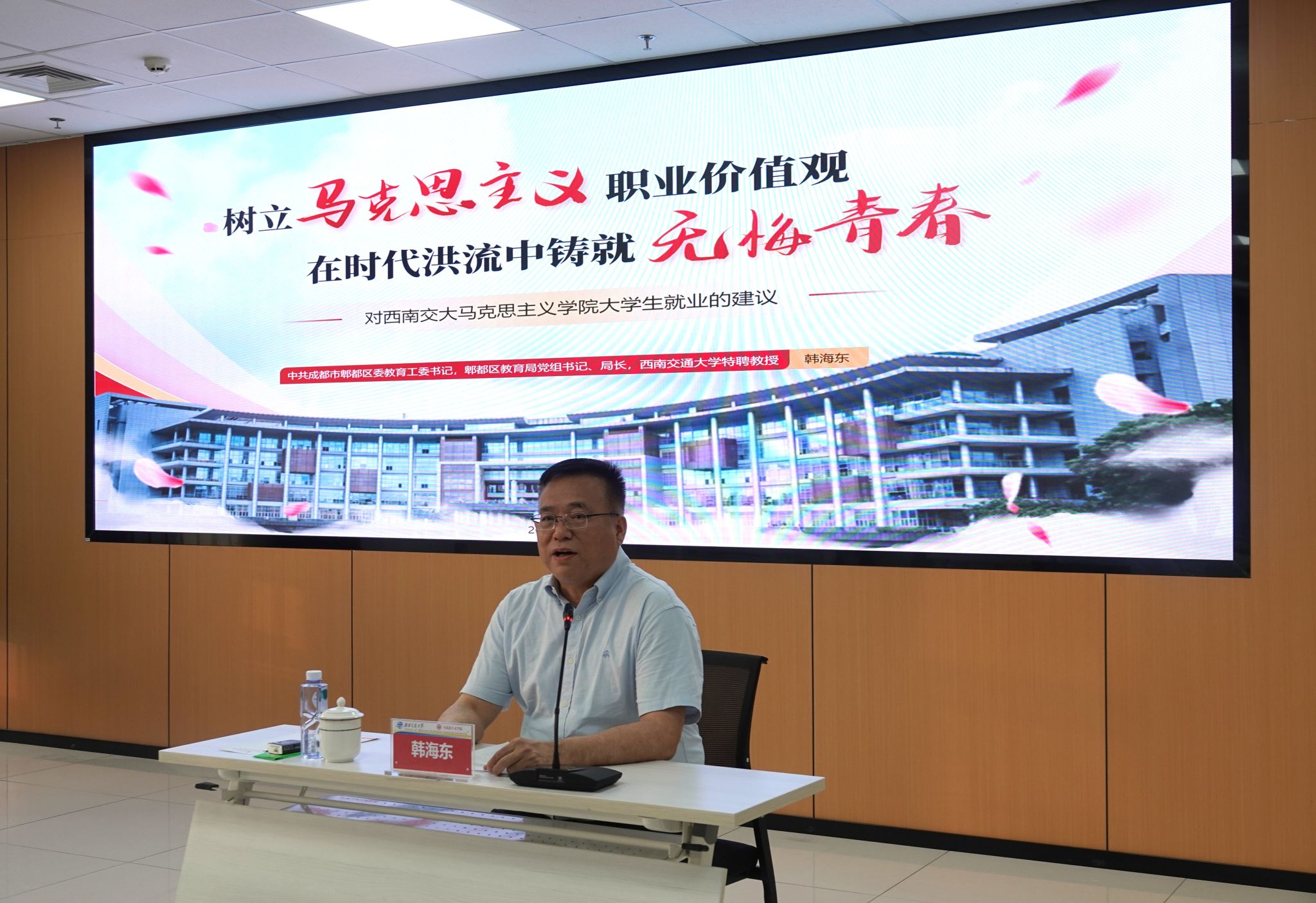 思政课特聘教授韩海东亲临现场,为学院学生带来关于就业的深度解读与宝贵建议。中共成都市郫都区委教育工委委员,郫都区教育局党组成员、机关党委书记邓永秀,郫都区教育局办公室、督导室相关工作人员,91国产