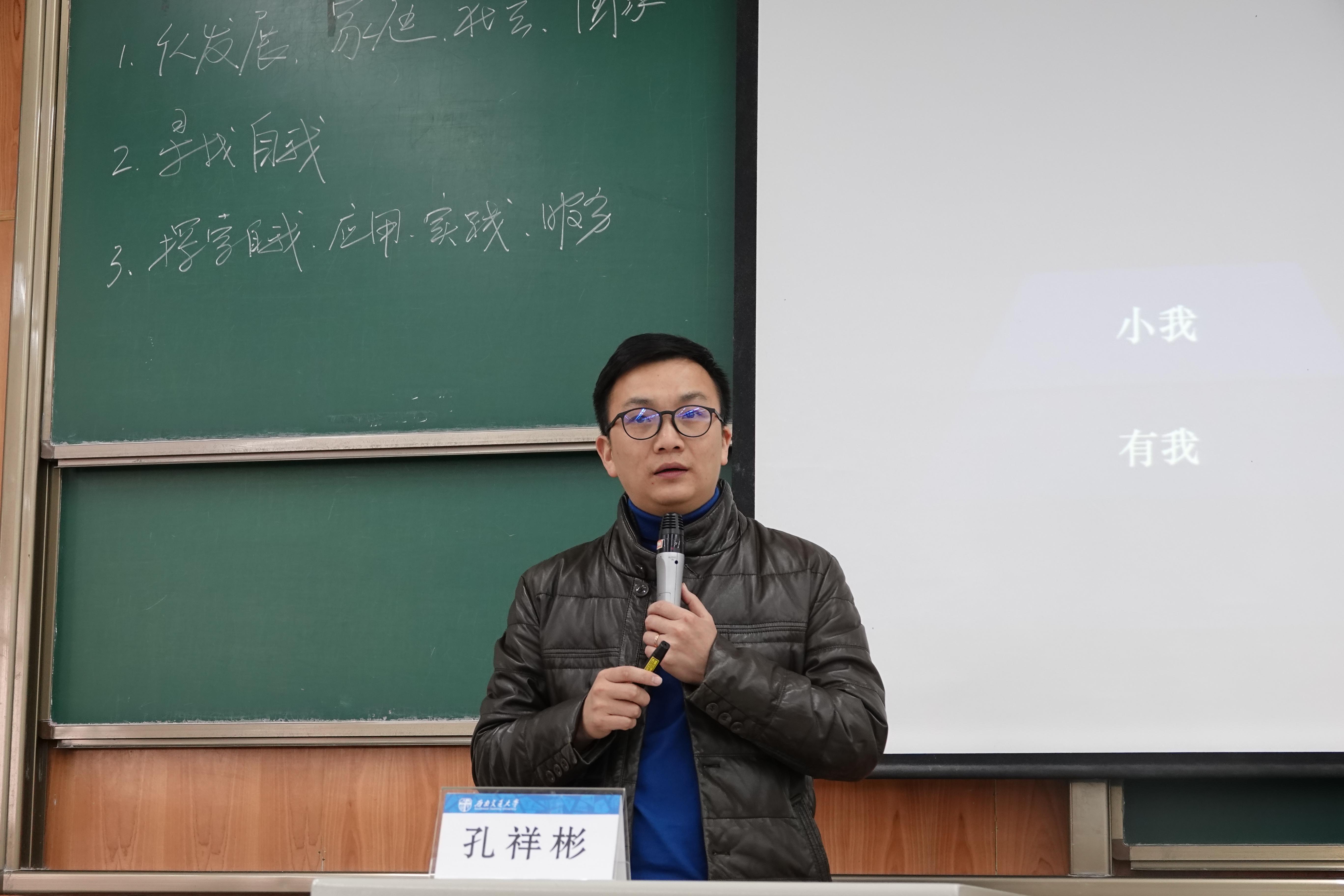 、数学学院和心理研究与咨询中心三个学院共同举办,邀请到力学与工程学院党委副书记孔祥彬作“人生意味最忌浅薄”的专题报告。三个学院的团干部和团员代表参加,讲座由我院团委书记赵晨主持。