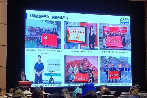 评选展示会上,思政2018-01班团支书龚禹竹从“越是尽责后,越是开心颜——班级事务管理”、“在马信马,在马行马——思想政治建设”、“青春须早为,岂能长少年——班风学风建设”、“聚是一团火,散是满天星——未来展望和期许”四个方面向全校师生展示了班级的风采。
