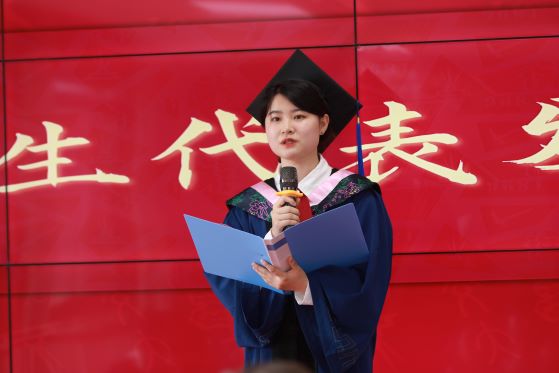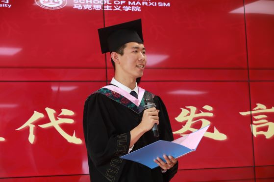 在毕业生代表发言环节,本科毕业生代表吴昊、硕士研究生代表刘京缘、博士研究生代表刘雨丝三位同学动情地抒发着自己对学院的不舍与感谢,感谢学院为自己搭建的平台,感谢学院优秀教职工队伍,感谢同窗的各位同学,大家相聚于初秋,分别于盛夏,祝愿马院、祝愿恩师、祝愿同窗也祝愿自己,希望学院发展更上一层楼,希望恩师们工作顺遂,也希望每位同学在充满无限可能的未来中,享受当下,热爱祖国,担当时代责任,书写自己的青春华卷。