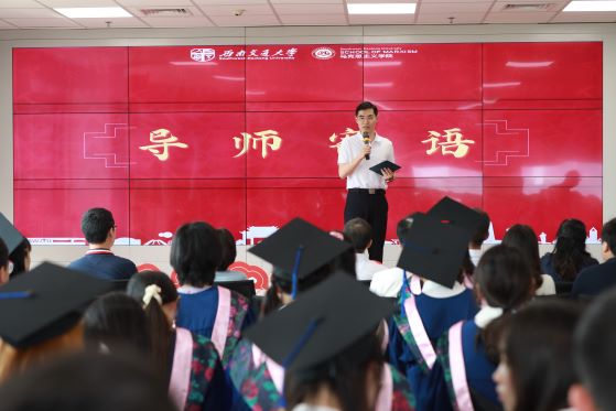 2023届本科生班导师杨桓老师用幽默诙谐的语言,回忆了自己陪伴同学们的点点滴滴,为同学们取得的成绩感到骄傲,对同学们即将毕业离校满怀不舍。杨老师希望同学们在未来的日子里保持自律和激情,跟随万里长江水去战场、去奋斗、去胜利。