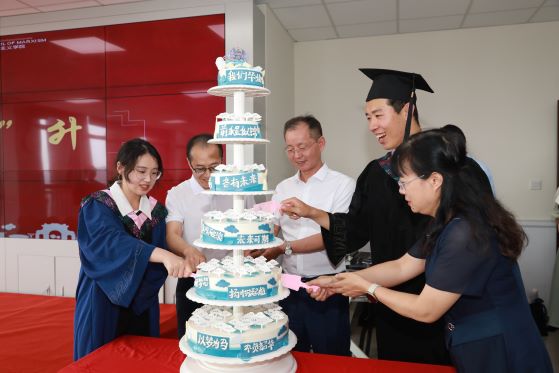 精美的蛋糕推进现场,2023届全体毕业生都拥有属于自己的一块蛋糕,也拥有属于自己独特的在马院的回忆,这个蛋糕表达了学院对毕业生们的祝愿,希望大家步步“糕”升。