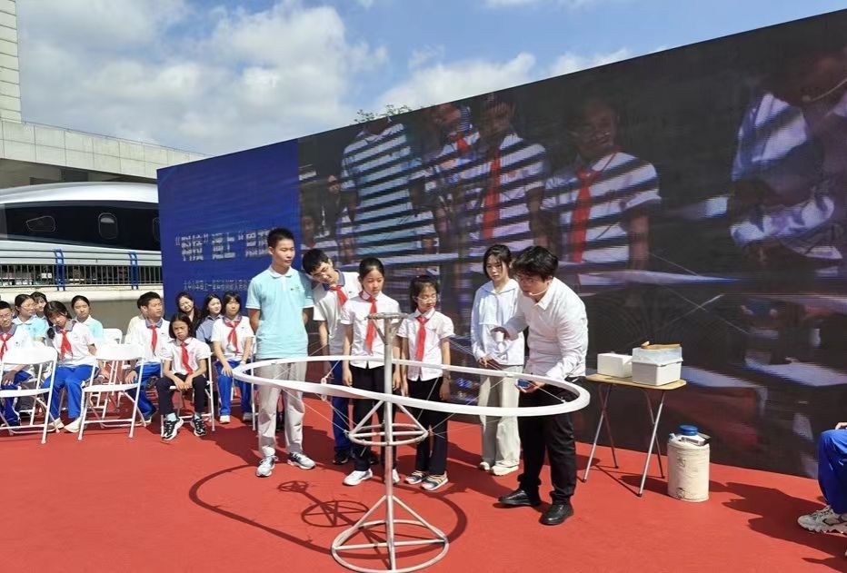 活动现场,来自轨道交通运载系统全国重点实验室青年科学家王理进行了高温超导磁悬浮技术实验演示,并让大中小学生切身体验、参与实验,深入感受科技创新的力量。来自成都实验小学、成都七中八一学校、91国产