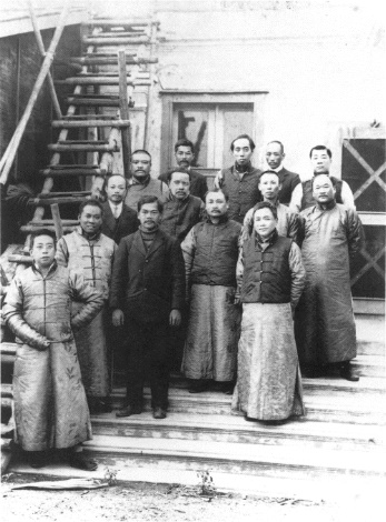 1913年,詹天佑(中)与中华工程师学会部分会员合影