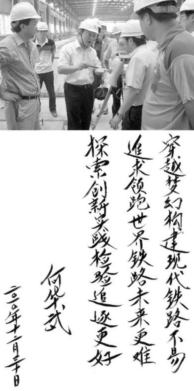 2008年6月,京津高速铁路“和谐号”开通前的试车时,何华武将妻子扶上车,坐在时速高达350公里的高铁里,眼里盈满泪水感受着中国速度。身为总工程师,为让我国动车永不追尾,何华武带领科研人员付出了巨大的艰辛,从选址到组织重大工程攻关,从主持关键技术试验到论证各种建设方案,中国铁路的六次提速何华武一次没有落下,为了心中的技术梦想,为了中国速度的提升,何华武拼命工作,作出了巨大的牺牲,才迎来了“中国速度史”上一个个闪闪发光的日子。