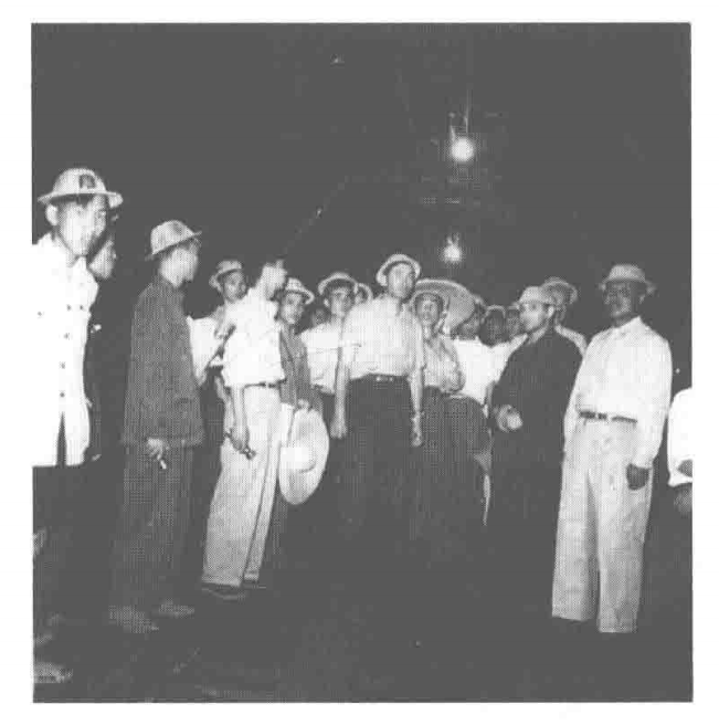2002年11月,谭靖夷院士(中)在三峡下岸溪人工砂石系统检查采场开采情况