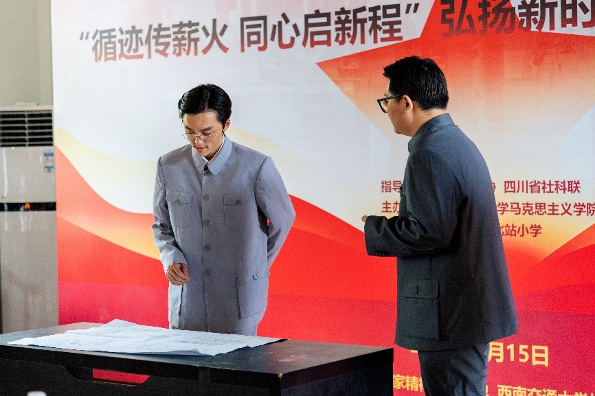 大学生艺术团微笑话剧团演绎了精彩的科学家精神原创话剧——《茅以升》(节选),该话剧以艺术形式生动再现了以茅以升先生为代表的爱国科学家胸怀家国、矢志创新的精神风貌,收获了现场嘉宾和观众的一致好评。